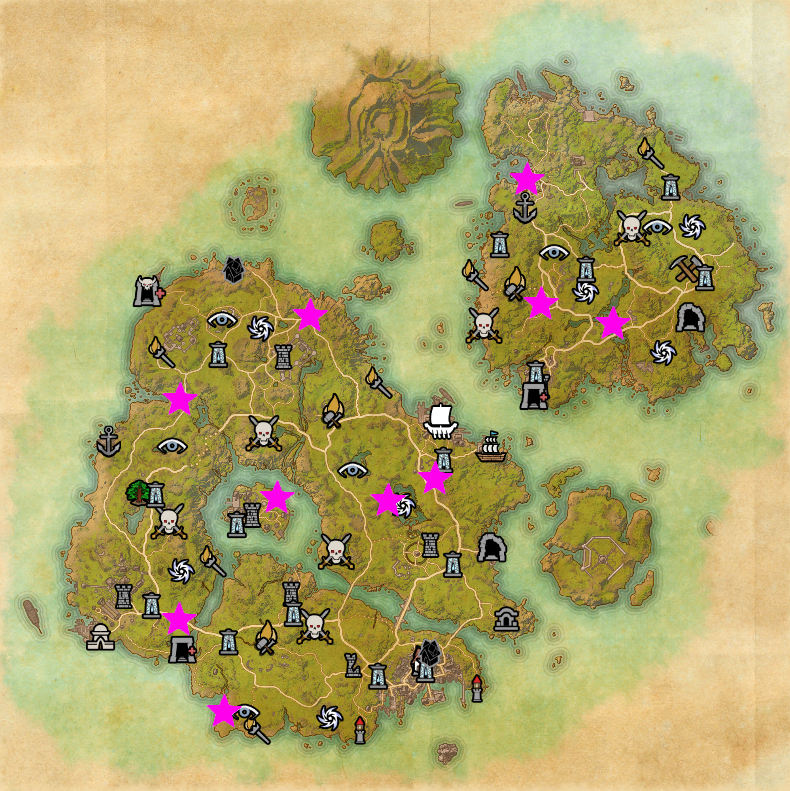| Thrassian Stranglers (1/5) | Eyevea | Harvest Nodes, Artaeum and Summerset (Psijic Portal) | Sticky Integument Leather | Mythic Fragment |