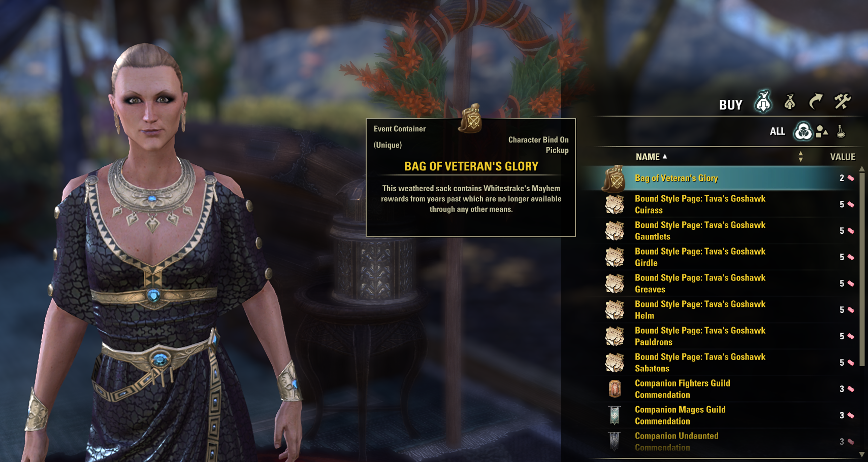 Events offer a variety of event-exclusive items from the Impresario (Faustina Curio) and her assistant (Philius Dormier), including several items from past events that no longer drop. Prior to early 2026, these had been purchasable with Event Tickes in curated grab bags. Starting in 2026, these are directly purchased with Trade Bars, though testing indicates this is likely on a multi-year cycle or that items may be moved to the Gold Coast Bazaar as well (we’ll find out with time). Alternatively, tradable versions from prior events are still floating around and can sometimes be purchased at favorable prices and are also available at all times instead of just during respective events.